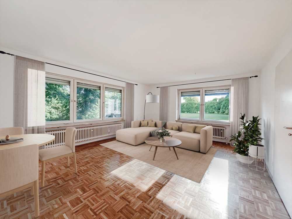 Das Highlight der Wohnung ist das großzügige Wohn-Esszimmer, das durch zwei große Fenster