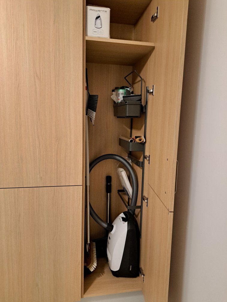 Bügelbrett, Bügeleisen und Wäscheständer sind in der Wohnung vorhanden.