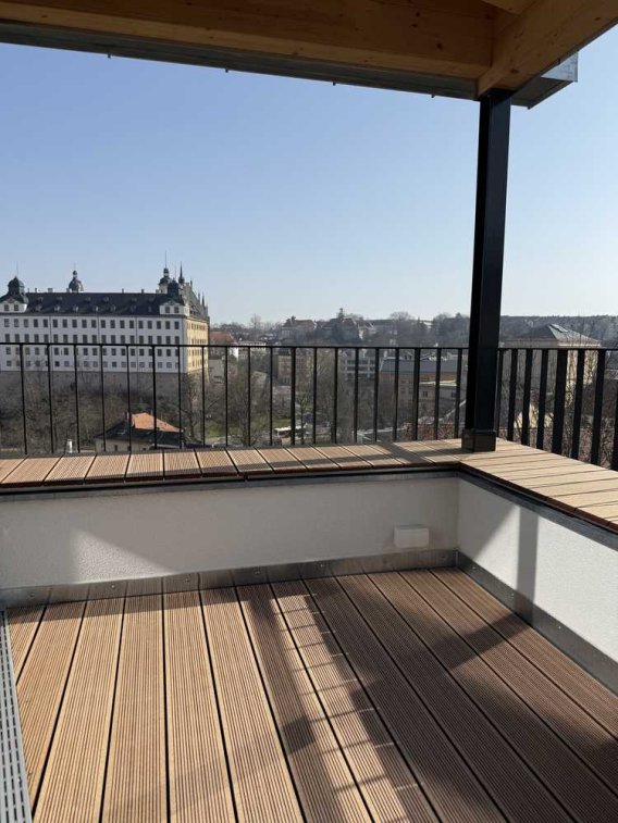 Zur Vermietung kommt ein außergewöhnliches Objekt. In sehr schöner Altstadtlage und mit spektakulärem Blick über die Stadt und seine Wahrzeichen entsteht derzeit der Neubau eines allein nutzbaren Townhouses mit 4 Etagen, 2 Balkonen, einer Terrasse sowie einer innenliegenden beheizbaren Garage. Das Wohnzimmer mit seiner bis in den Dachfirst geöffneten Decke befindet sich in der obersten Etage. Im 2. Obergeschoss befinden sich Schlafräume und ein großes Badezimmer mit bodengleicher Dusche und freistehender Badewanne. Im 1. Obergeschoss befinden sich die Küche, ein angrenzender offener Essbereich und ein überdachter Balkon. Das Erdgeschoss bietet eine beheizbare Garage mit Doppelglastür zur Terrasse, den Technikraum, ein WC und den Standplatz für Waschmaschine und Trockner.