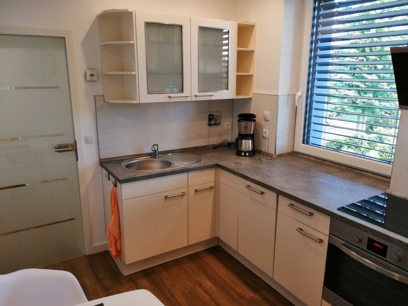 Waschmaschine ,Geschirr-, Handtücher sowie Bettwäsche vorhanden.