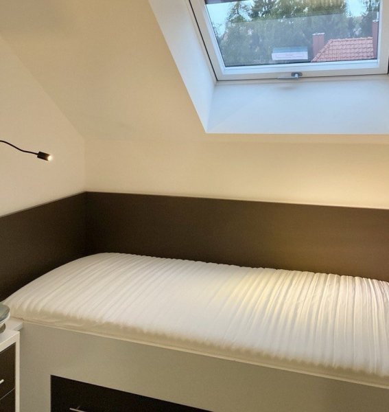 Diese Wohnung ist für Studierende vorgesehen. Sie ist vollständig ausgestattet, mit einer Einbauküche, einem Bad mit Dusche, Schränken, einem Schreibtisch und einem Bett. Zudem gibt es ein wunderschönes Dachfenster. Außerdem ist eine Belüftungsanlage vorhanden, die regelmäßig gewartet wird, sowie eine Klimaanlage.