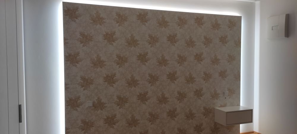 - Schlafzimmer mit Wandpanel beleuchtbar
