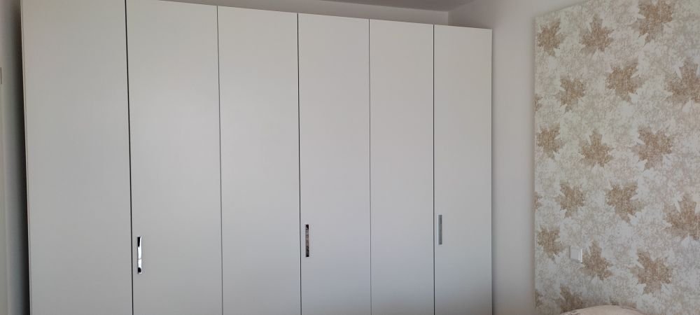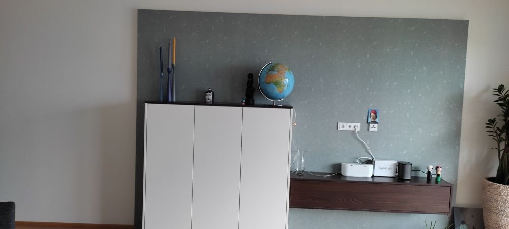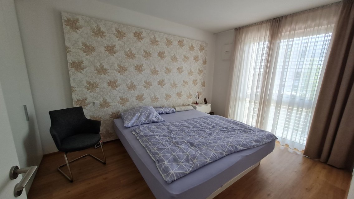 Das Schlafzimmer hat an der Bettkopfseite ein Wandpanel mit Ablage, welches beleuchtet werden kann.