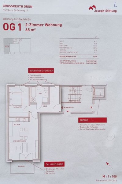 tolle 2-Zimmer-Wohnung mit Balkon incl. Einbauküche im 1. OG mit Aufzug + Tiefgaragenstellplatz und Kellerabteil in Nbg.-Großreuth b. Schweinau (Erstbezug 2017)