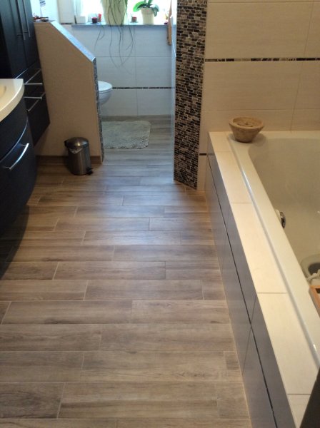- Holzoptik-Fliesen mit Fußbodenheizung