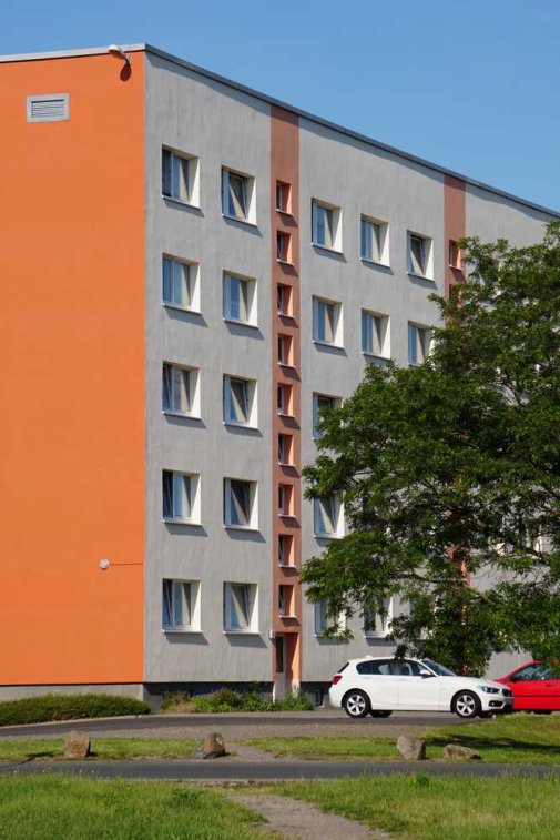 Die Wohnanlage befindet sich am Ortsrand von Grimma und erstrahlt in frischem Glanz und freundlicher Farbgebung. In unmittelbarer Umgebung befinden sich eine kleine Grünanlage, ein Einkaufscenter, ein Autohaus sowie weiteren Wohnhäusern. Von der Bushaltestelle vor der Anlage gelangt man direkt in das Stadtzentrum und man ist in ca. 7 min zu Fuß am Bahnhof.