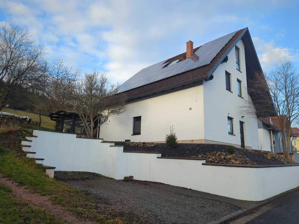 das Haus ist nicht nur freistehend, sondern liegt auch noch an einer riesigen Wiese, die an einen Wald grenzt. In die andere Richtung hat man einen tollen Blick auf den Dolmar.