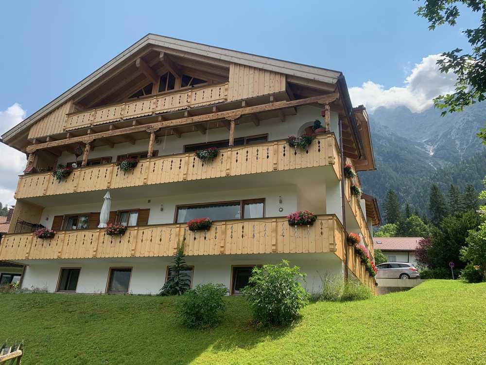 Die Wohnung befindet sich in einem MFH mit 7 WE. Das zeittypisch alpenländische Gebäude wurde in Massivbauweise errichtet. Aufgrund seiner Hanglage und der Ausrichtung der Wohnung nach Süden besticht diese durch einen traumhaft schönen Ausblick auf die Alpenwelt Karwendel.