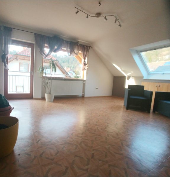 In einer ruhigen und gepflegten Wohngegend vermieten wir eine gemütliche, helle 3-Zi-Dachwohnung in Grossheubach (Südhang) mit Fernblick,