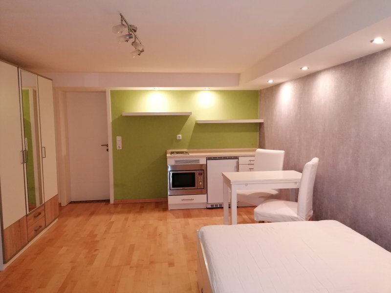 In der Miete ist das möblierte Zimmer, die Kochgelegenheit mit Ceranfeld, Backofen- Micro-Kombigerät, Fernsehanschluss und WLan enthalten.