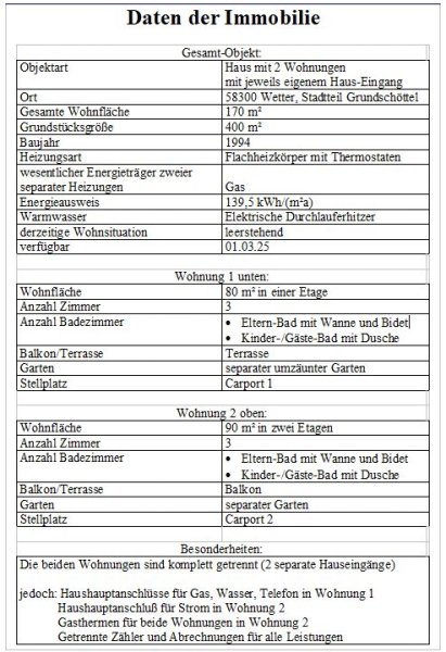 Das angebotene Haus befindet sich in Wetter-Grundschöttel in einem 1993 angelegten, verkehrsberuhigten, mit Anliegerstraße erschlossenen Siedlungsgebiet mit gutem nachbarschaftlichem Verhältnis. Zur Bushaltestelle sind es ca. 100 m.