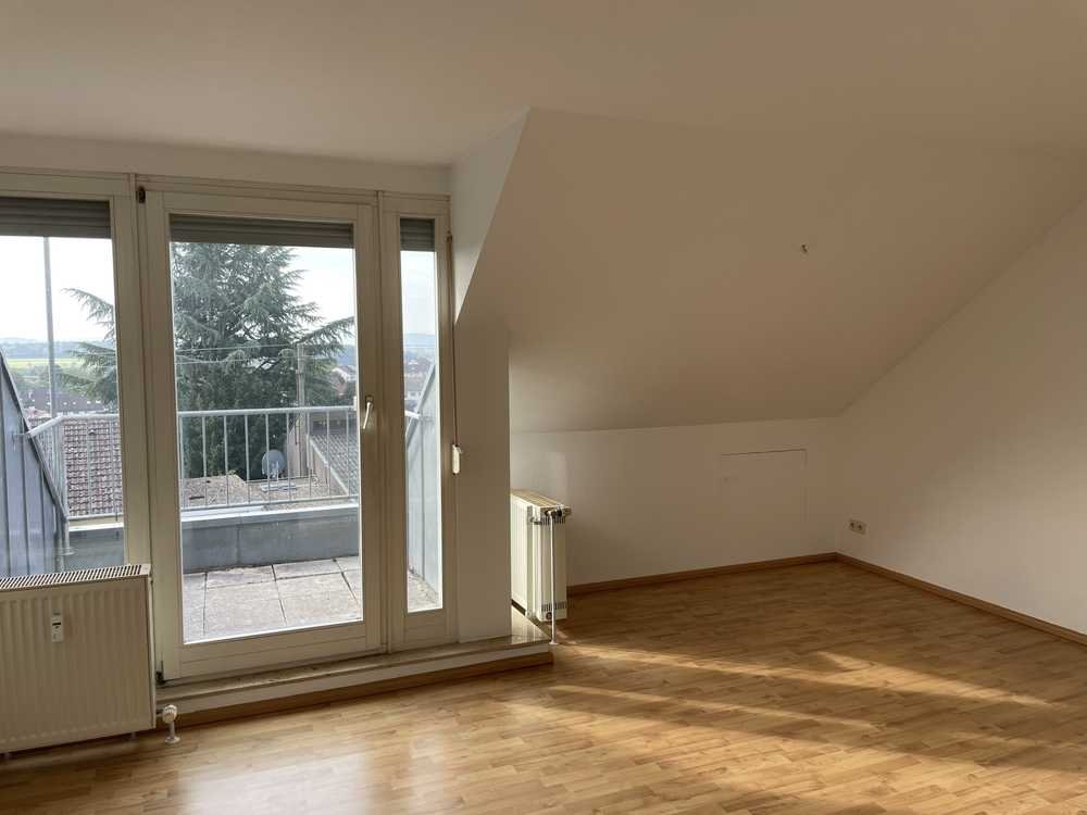 Vermietet wird eine unmöblierte, freundlich helle und gepflegte 2-Zimmer-Dachgeschosswohnung in der 3. Etage eines ruhigen 6-Familien-Hauses in Affalterbach (Uhlandstraße). Zur Wohnung gehören 2 attraktive Zimmer, sowie ein kleiner Balkon mit unverbaubarem Weitblick. Die Wohnung liegt in einer Sackgasse und ist daher sehr ruhig gelegen. Dennoch sind alle Geschäfte des täglichen Bedarfs fußläufig gut zu erreichen.