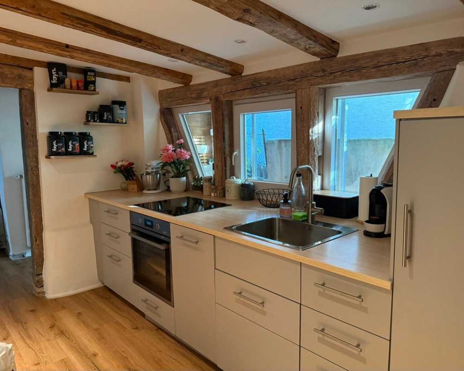 Die ansprechende Erdgeschosswohnung ist Teil eines 3-Familienhauses (Baujahr 1920), das jüngst kernsaniert wurde. Die Wohnung steht ab 01.02.2026 nach Rücksprache evtl. auch bereits ab 01.01.2026 zur Verfügung. Zu dem Apartment zählen anderthalb attraktive Zimmer bestehend aus einem Wohn-/Schlafbereich, separater Essbereich, Küche und Tageslichtbad. Die große Terrasse ist teilweise überdacht und verfügt über einen Abstellraum. Eine bereits eingebaute Küche spart Ihnen beim Einzug Zeit und Mühe. Die dargestellten Möbel können teilweise gegen Ablöse übernommen werden.