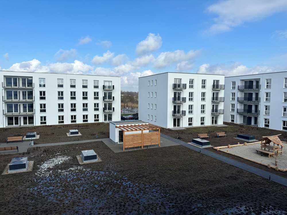 Es stehen 81 Wohnungen in verschiedenen Größen von 2 bis 5 Zimmern zur Verfügung. Bei dieser attraktiven Wohnung handelt es sich um einen Neubau-Erstbezug von 2024. Die Wohnung im 2.OG, kann ab dem 01.12.2024 oder später 2025 bezogen werden. Drei hübsche Zimmer laden zur freien Entfaltung und individuellem Einrichten ein. Das Wohnzimmer mit Süd-West-Balkon ist offen zur Küche gestaltet. Ein zweiter Balkon ist in Nord-Ost-Richtung gelegen. Die Wohnung lässt sich bequem über einen Fahrstuhl erreichen und ist barrierefrei zugänglich. Inbegriffen ist eine Einbauküche. Bei Bedarf ein Auto-Stellplatz, der zusätzliche 115 € kostet. Dadurch gehört langes Parkplatzsuchen der Geschichte an. Ein aktueller Energieausweis ist vorhanden.