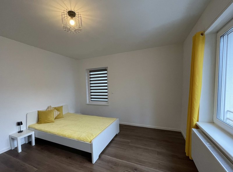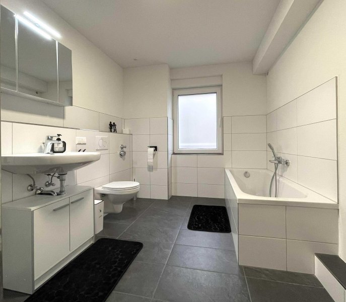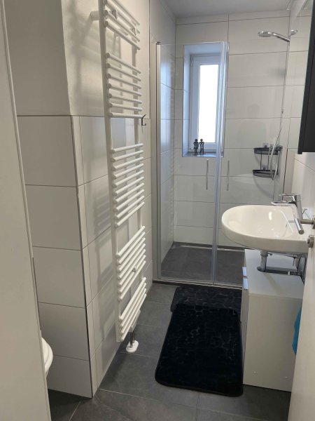 Neben diesem Zimmer gibt es noch 4 weitere Zimmer, eine neue Küche mit Herd, Backofen und Spülmaschine; einen Abstellraum mit großem Kühl-/Gefrierschrank und einer Waschmaschine; zwei Tageslicht-Bäder (1. Bad: WC, Badewanne, Dusche; 2. Bad: WC, Dusche), eine tolle große Dachterrasse und einen Kellerraum.