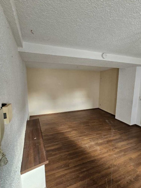 Über zwei Stufen gelangen Sie zum Eingang der Wohnung. Vom Eingangsbereich aus führt ein Durchgang in die beiden hintereinanderliegenden Zimmer. Das vordere Zimmer eignet sich ideal als Wohnbereich oder Arbeitszimmer, während das hintere Zimmer als ruhiges Schlafzimmer genutzt werden kann.
