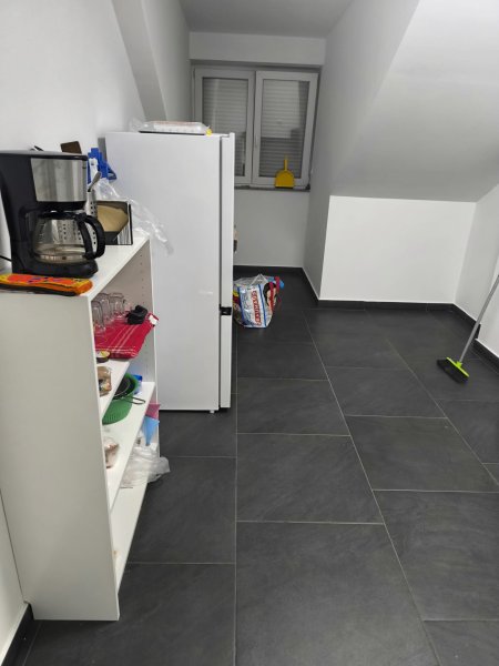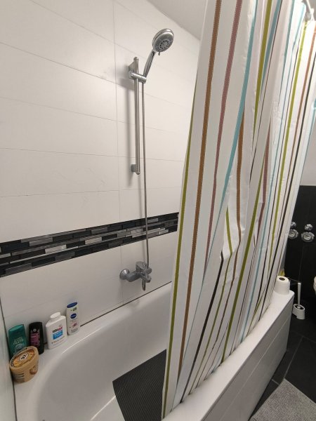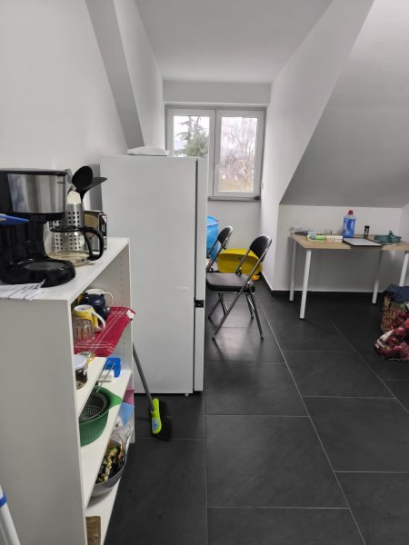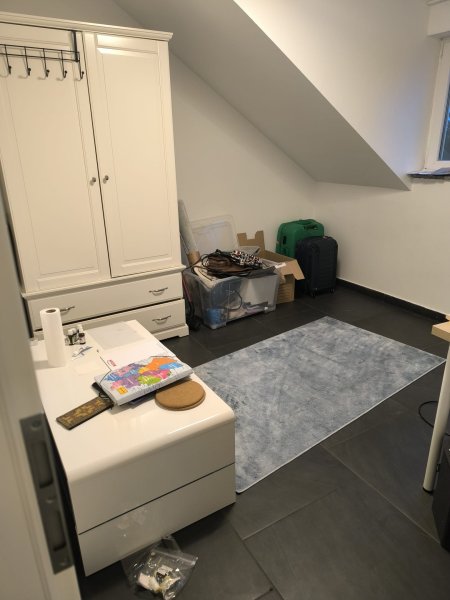 Sie ist zudem gut ausgestattet. Die Küche ist groß genug für gemeinsame Kochabende und Gäste. Zur Wohnung gehören Küchenschränke, ein Kühlschrank, drei Tische mit Stühlen, ein Couchtisch, ein Nachttisch, eine Konsole, ein Sofa, eine Matratze, ein großer Kleiderschrank, ein kleiner Kleiderschrank, ein Staubsauger und ein Fernseher. Ich kann all das für 1000€ überlassen. Zusätzlich lasse ich Teppiche, Teller, Besteck, eine Nachttischlampe und Töpfe da. Wenn Sie einziehen, ist also fast alles bereit.