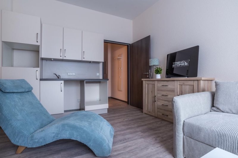 Die Einraumwohnung mit ca. 31,78 m² eignet sich für Mieter, die wenig Platz benötigen und sich auch gerne unter Menschen aufhalten, da genügend Gemeinschaftsräume bzw. Aufenthaltsräume vorhanden sind. Ein lichtdurchflutetes Wohn- und Schlafzimmer, eine Küchenzeile ( mit Kühl- Gefrier- Kombination, E- Herd nachrüstbar) ein großzügiges Badezimmer und ein Vorflur schaffen wohnliches Ambiente.