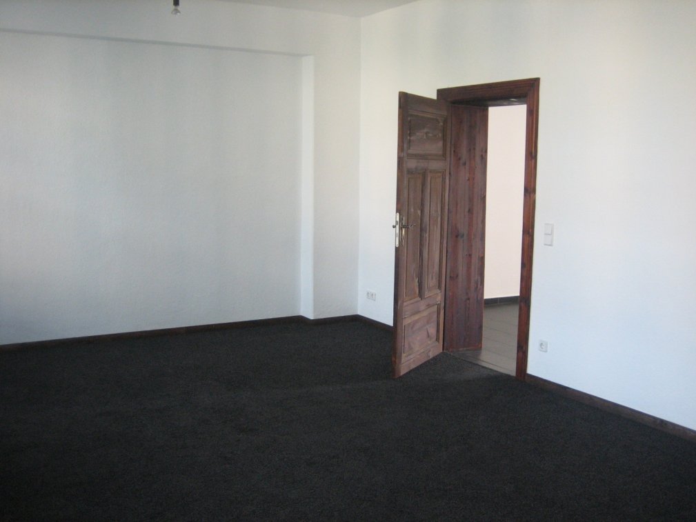 2. OG; 82 m2, davon Wohnzimmer insg. ca. 30 m2, mit rückbaufähiger Trennwand (hier separate Zugänge über Flur bzw. Küche); Schlafzimmer ca. 17 m2;