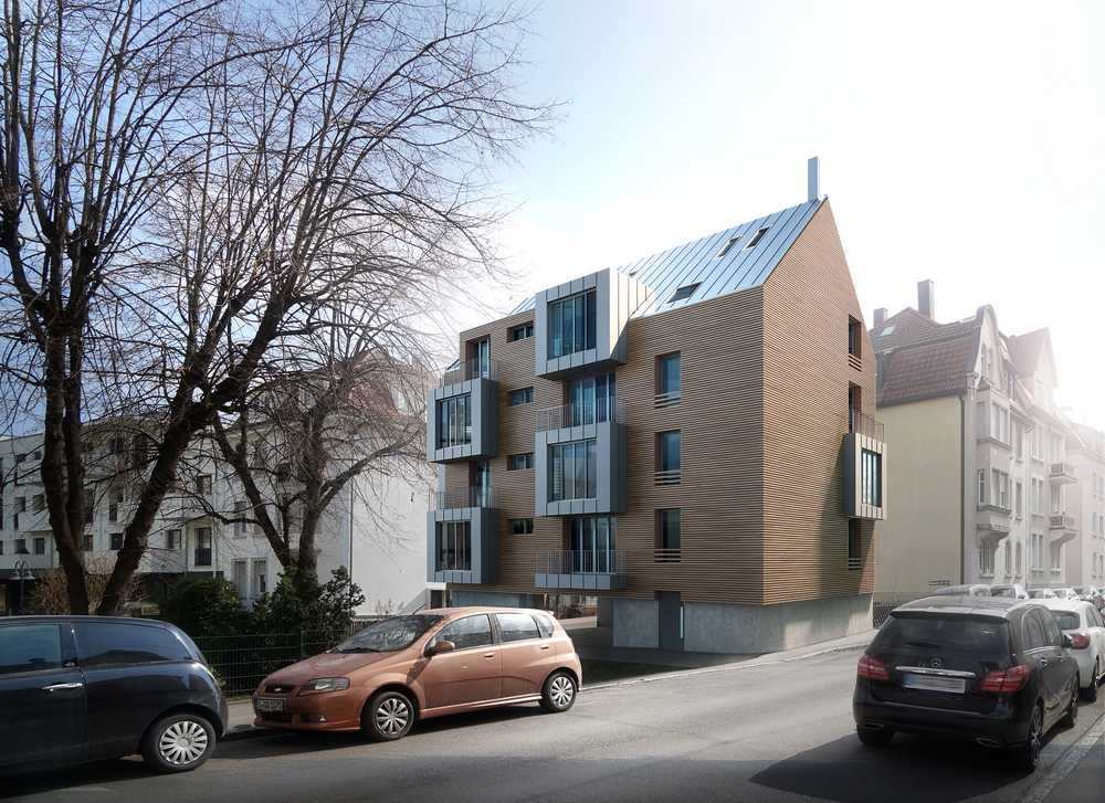 Der 5-stöckige Neubau mit ausgebautem Dachgeschoss umfasst 8 moderne Wohnungen (von ca. 47 m² bis ca. 99 m²) über 4 Stockwerke, mit 6 Stellplätzen im Erdgeschoss. Die optimal aufgeteilten Einheiten ermöglichen ein kompaktes und dennoch großzügiges Wohnerlebnis in Großstadtnähe mit einem hohen architektonischen Anspruch. Neben den separaten Abstellräumen für jede Wohnung werden auch Fahrradabstellplätze im Untergeschoss angeboten.