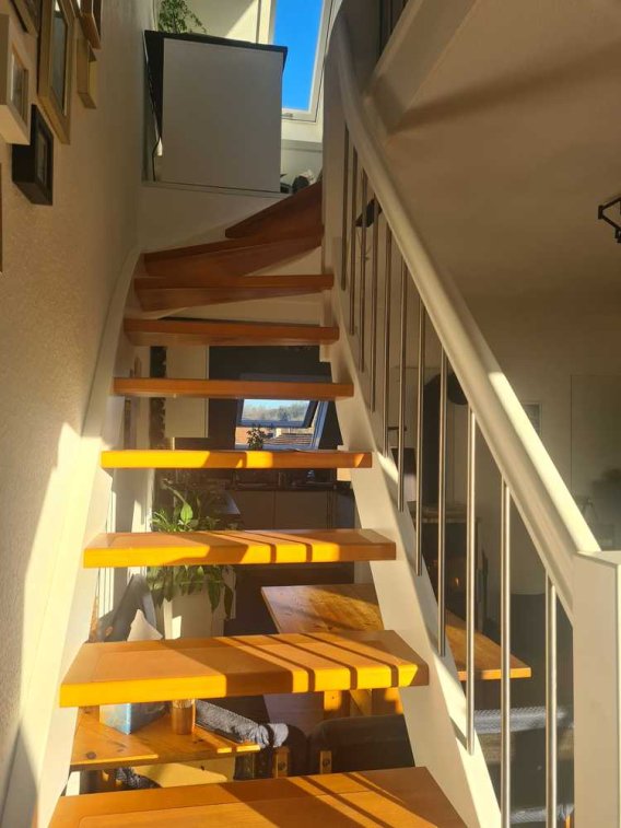 � 2019 wurde das 2. Dachgeschoss ausgebaut und die gesamte Wohnung mit einer Luft-Luft-Wärmepumpe ausgestattet. Diese sorgt für angenehme Temperaturen im Sommer (Kühlen) wie im Winter (Heizen). Zusätzlich steht ein gemütlicher Holz-Kaminofen zur Verfügung.