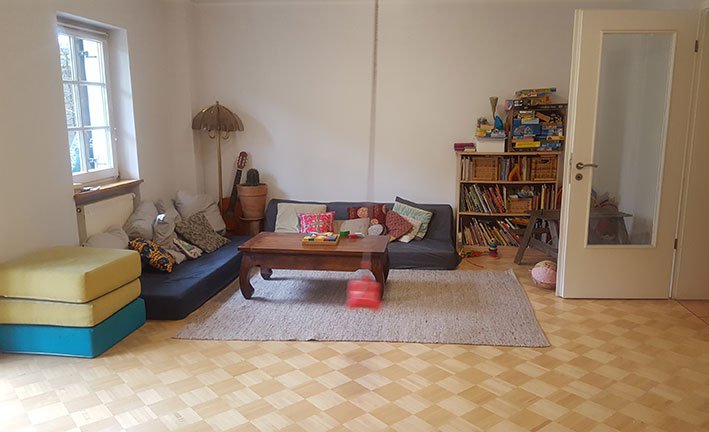 Für das 30 m² große Zimmer im Untergeschoss suchen wir einen neuen offenen und kinderlieben Mitbewohner*in, der/die Lust auf unser buntes Zusammenleben hat. Wir, das sind eine Familie mit drei Kindern von vier bis neun Jahren im 1. Stock und ein Wochenendpapa im 2. Stock.