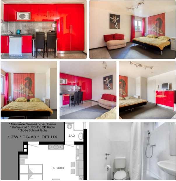 Kompakt, möbliert, voll ausgestattet; 1 Zi-Apartment, Küchenzeile, Du/WC, gehobener Standard