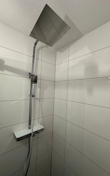 Der Eingangsbereich der Wohnung begrüßt Sie und bietet Platz für eine Garderobe und einen Schuhschrank. Das angrenzende Badezimmer ist kompakt, aber fein geschnitten, mit einem Waschbecken und einer begehbaren Dusche ausgestattet. Ein separates WC mit Armaturen von Villeroy & Boch oder Grohe bietet zusätzlichen Komfort.