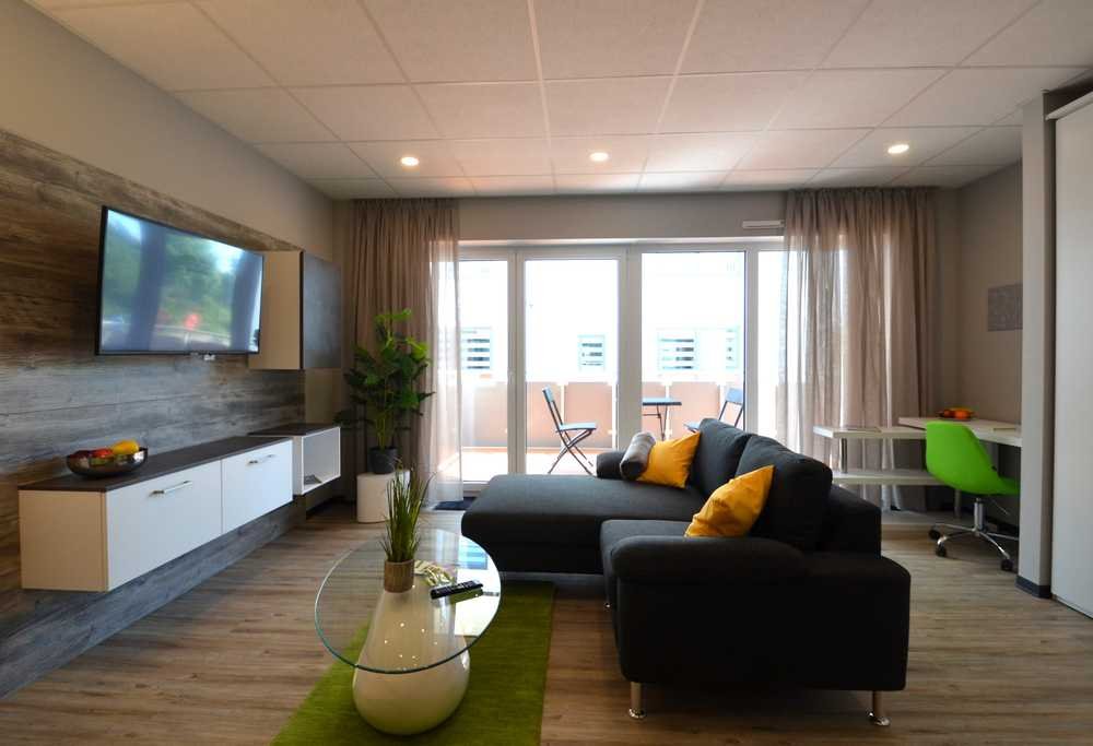 Schönes, helles 1-Zimmer-Apartment mit Doppelbett, Balkon und voll ausgestattet kann unkompliziert gebucht werden.