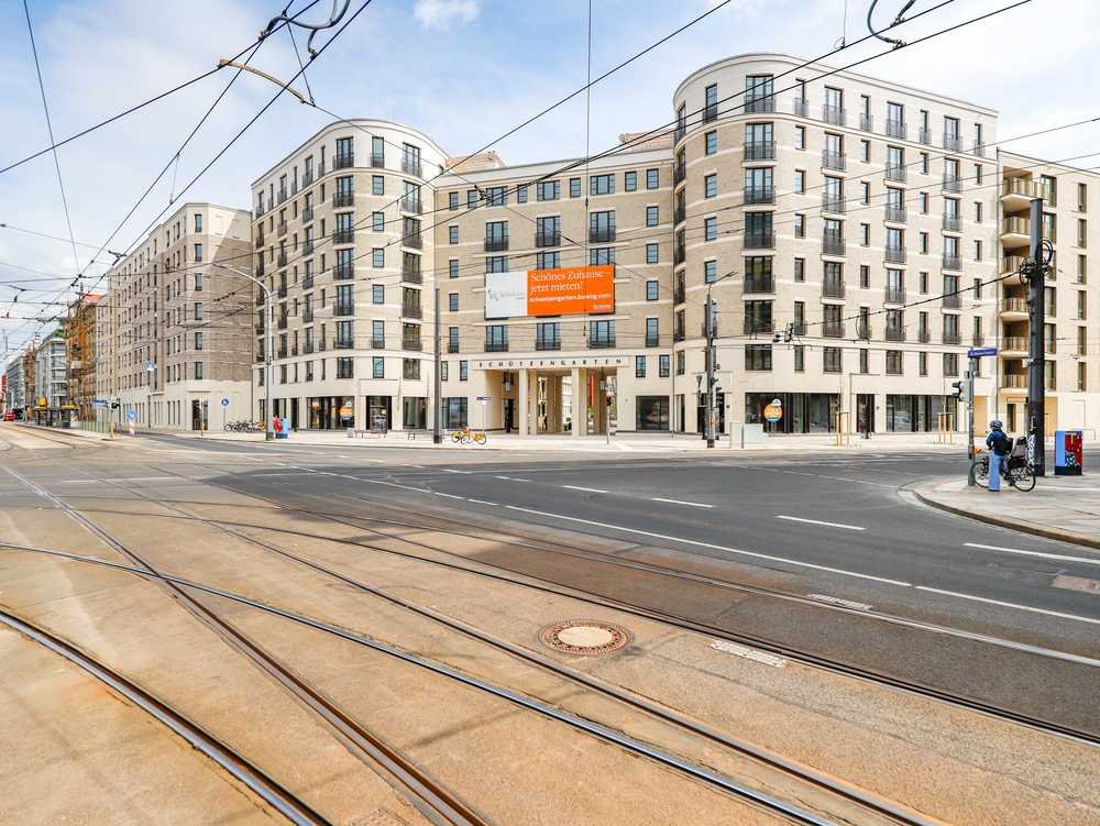 Das Wohnquartier „Schützengarten“ in unmittelbarer Nähe zum historischen Dresdner Stadtzentrum bietet 403 moderne und hochwertig ausgestattete 1- bis 7-Zimmerwohnungen in bester Lage. Wo früher ein einfacher Plattenbau stand, befindet sich heute ein Ensemble hochwertiger Stadthäuser mit der Wiederaufnahme des ehemaligen Schützengartens als ruhiger und begrünter Innenbereich des Viertels. Die Ausstattung der Wohnungen lässt keine Wünsche offen: Weiß gespachtelte Zimmerwände in Feinputz, Echtholz-Eichenparkettboden mit Fußbodenheizung, bodentiefe Isolierfenster, teilweise elektrische Außenrollläden, CAT-7 Verkabelung, digitale Zentralsteuerung der Fußbodenheizung, der Rollläden sowie der Videogegensprechanlage, hochwertige Einbauküchen mit Markengeräten, hell geflieste Bäder mit Markenarmaturen und viele Annehmlichkeiten mehr. Eine moderne Aufzugsanlage bringt Sie bequem in Ihre gewünschte Etage. Überzeugen Sie sich persönlich von der hohen Qualität und der angenehmen Wohnatmosphäre bei einem Besichtigungstermin vor Ort.