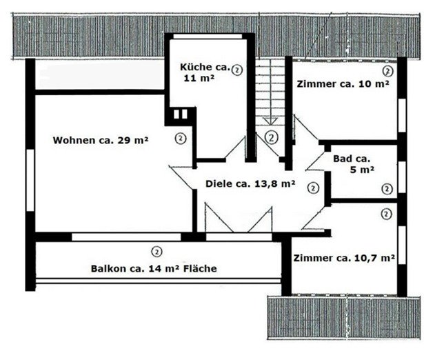 Die Wohnung verfügt über einen überdachten, ca. 14 qm großen Balkon, auf dem gerne mit Gas oder Strom gegrillt werden darf, da eine Gartennutzung ausgeschlossen ist.