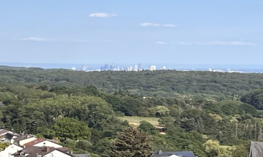 Von allen Wohn- und Schlafzimmern genießt Du einen beeindruckenden Fernblick über die Skyline von Frankfurt, kannst die Flugzeuge am Flughafen beobachten und die gesamte Main-Ebene sehen. Bei klarem Wetter ist nachts ein beeindruckender Sternenhimmel dein Dach.