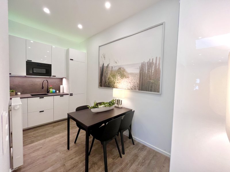 Die voll ausgestattete neue Küche mit einem Essbereich zum gemeinsam Zeit verbringen und Kochen bietet ausreichend Platz und lädt zum Verweilen ein.