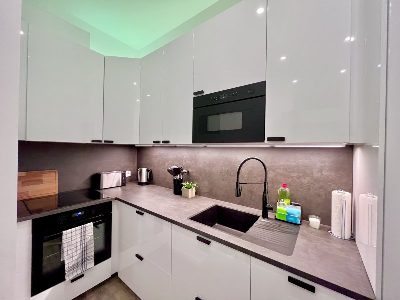 Die Küche bietet Dir dabei alle nur vorstellbaren Annehmlichkeiten: