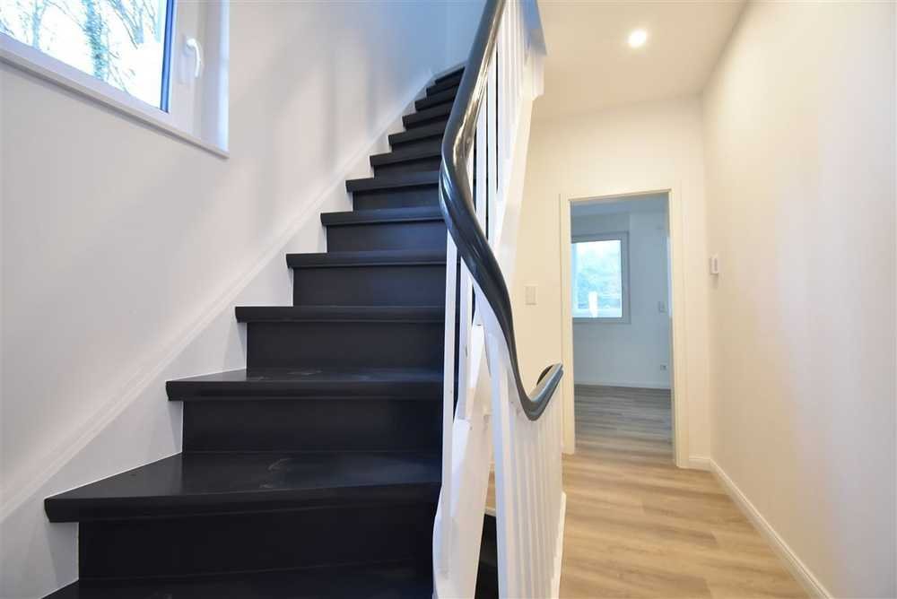 Dieses moderne Einfamilienhaus befindet sich im beliebten Velberter Stadtteil Langenberg. Im Zuge der Sanierung wurden die Wände weiß verputzt, zeitlose Bodenbeläge verlegt und neue Türen eingebaut. Wenn Sie die Einheit betreten stehen Sie zunächst im kleinen Eingangsbereich. Angrenzend befindet sich der geräumige Keller, welche auch über einen Waschplatz verfügt. Über eine weiß/ Anthrazite lackierte Treppe erreichen Sie das 1. Obergeschoss. Hier befindet sich zum einen das erste Tageslichtbad mit bodentiefer Dusche, welches mit großen Fliesen in Betonoptik versehen wurde. In der großzügig geschnittene Küche können Sie Ihre ganz eigenen Küchenträume verwirklichen. Außerdem ist hier noch ausreichend Platz für den Essbereich. Angrenzend befindet sich das Wohnzimmer. Abgerundet wird die Etage vom dem gemütlichen Wintergarten, der zum Verweilen einlädt. Im 2. Obergeschoss stehen Ihnen 2 Schlafzimmer zur individuellen Nutzung zur Verfügung, sowie das zweite Bad, welches mit einer Wanne ausgestattet wurde.