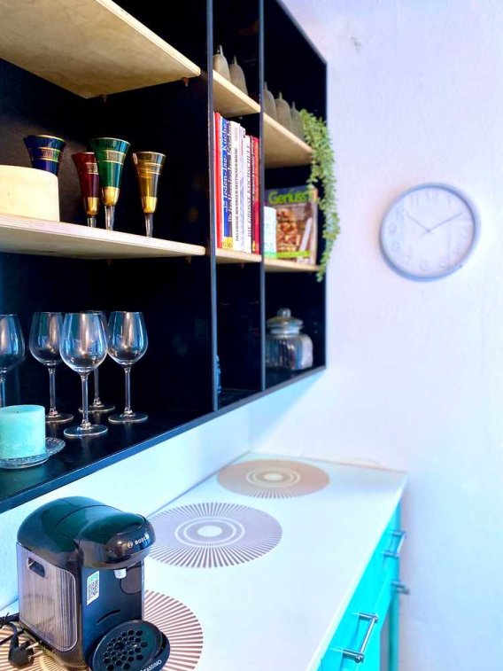 Die Räumlichkeiten der Wohnung bestehen aus insgesamt zwei Zimmern, einem gemütlichen Schlafzimmer, einem modernen Badezimmer und einem Wohnraum mit offener Küche. Von der Küche aus gelangt man direkt auf die Terrasse, welche mit einer Gartenfläche von 15 m² ein kleines Stück privates Grün bietet. Die Wohnung ist hell und einladend gestaltet, sodass man sich direkt wohl fühlt.