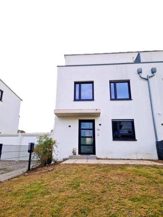 Die schöne und neuwertige, dreistöckige Doppelhaushälfte können Sie zum 01.09.2025 beziehen. Die Immobilie besticht durch eine gehobene Innenausstattung. Das Objekt bietet neben fünf attraktiven Zimmern zwei Badezimmer und ein separates WC für Gäste. Des Weiteren überzeugt der gute Schnitt, der auch für WGs geeignet ist. Ihnen stehen außerdem eine Einbauküche sowie eine Garage für Ihr Auto und ein Kellerraum zur Verfügung. Das 10.2017 erbaute Gebäude wird durch eine Fußbodenheizung beheizt. Die monatliche Miete für die Immobilie mit Grundstück beträgt 2.700 Euro.