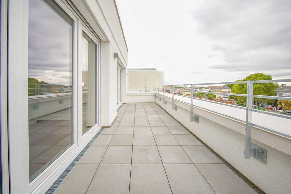 Die offene Markenküche mit Einbaugeräten ist komplett ausgestattet und schafft ein ausgesprochen angenehmes Wohnambiente. Das Highlight der drei Schlafzimmer ist zweifellos der großzügige Schnitt. Eines der Schlafzimmer bietet sogar direkten Zugang zur Dachterrasse. Das elegante Bad ist mit Badewanne und WC ausgestattet. Das zweite Bad besticht durch eine Dusche und WC. Besonders bequem ist auch der Waschmaschinenanschluss in Ihrer Wohnung. Die große Dachterrasse stellt höchste Wohn- und Lebensqualität sicher. Zu Ihrer Wohnung gehört selbstverständlich auch ein großzügig bemessener Tiefgaragenplatz.