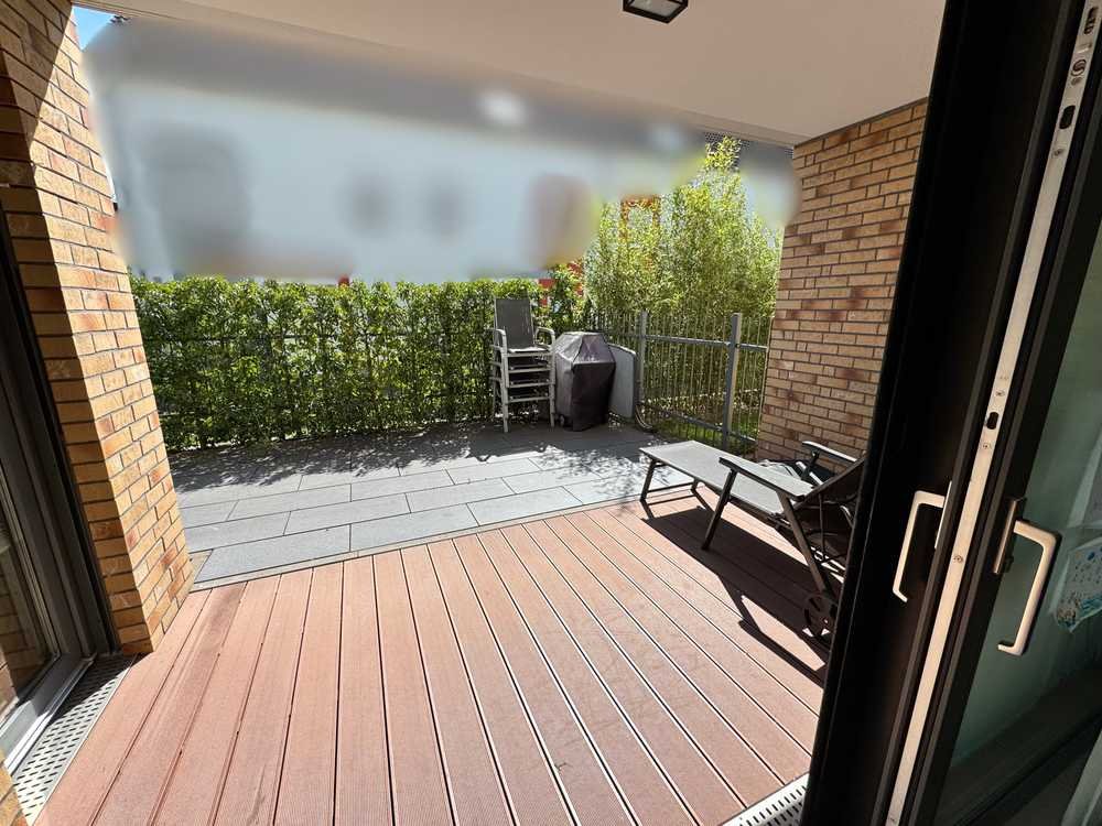 Großzügige Terrasse mit Panoramaschiebetür und eigenem Garten (ca. 84 m²)