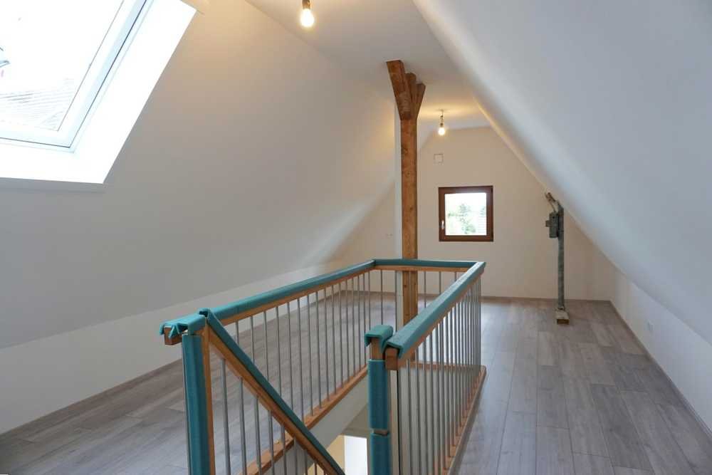 Die schöne und großzügige 4-Zimmer Wohnung befindet sich im 1.Obergeschoss eines sehr gepflegten Zweifamilienhauses, dass die letzten anderthalb Jahre sehr aufwendig kernsaniert wurde.  Auf ca. 130 m² Wohnfläche verteilen sich 4 Zimmer, die sich bestens zum Wohlfühlen eignen. Das Wohn- und Schlafzimmer bieten genügend Platz für die persönliche Entspannung. Das Kinderzimmer kann wahlweise auch als Ankleidezimmer oder als Büro genutzt werden. Die Küche ist mit einer neuen Einbauküche versehen, welche mit den wichtigsten Geräten ausgestattet ist. Für den Essbereich ist in der Küche noch genügend Platz. Von der Küche aus gelangt man auf den neu angebauten Balkon, mit einer herrlichen Aussicht. Das Tageslichtbad verfügt über eine Dusche, eine Toilette und ein Waschbecken. Außerdem verfügt die Wohnung über eine Gästetoilette. Das Highlight dieser wunderschönen Wohnung ist das ausgebaute Dachgeschoss, welches reichlich Platz für jegliche Nutzungsmöglichkeiten bietet. Eine kostenpflichtige Garage und ein separates Kellerabteil, gehören direkt zu der Wohnung. Der Waschmaschinenanschluss für die Wohnung befindet sich im Keller und das Haus wird durch die Schopflocher Nahwärme beheizt. Um die Nebenkosten möglichst gering zu halten, führen die Mieter die Kehrwoche und das Schneeräumen im regelmäßigem Wechsel durch.