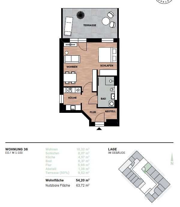 - 54,2 m² Wohnfläche