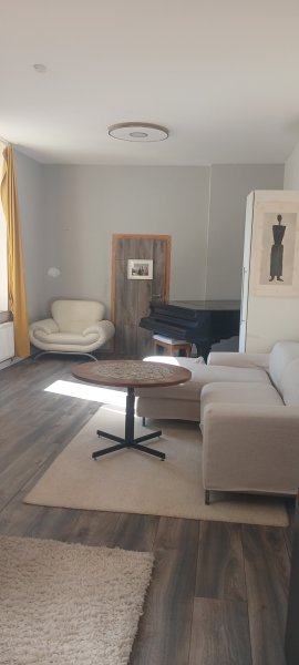 Altbauwohnung im 1. Stock, mit Deckenhöhen bis zu 4 Metern, einer Gesamtgröße von 113,5qm², die sich fußläufig zur Rheinnähe befindet. Es fallen noch zusätzliche Kosten von Telefon und Internet 15 €. Es handelt sich hier um ein Objekt mit Staffelmiete.