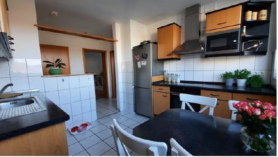 Esstisch und ist mit einer modernen Einbauküche (inkl. Kühl-