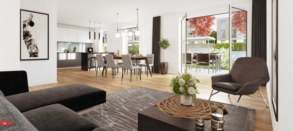 Diese großzügige Erdgeschosswohnung befindet sich in einem modernen Neubau und überzeugt durch ihre durchdachte Architektur sowie eine hochwertige Ausstattung. Die Wohnung verfügt über zwei Terrassen – eine vor dem Haus und eine hinter dem Haus mit Grünfläche.