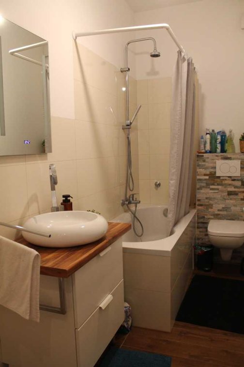 Die Wohnung besteht aus vier Zimmern, einer Küche und einem Bad und wir mit einer Gastherme beheizt.