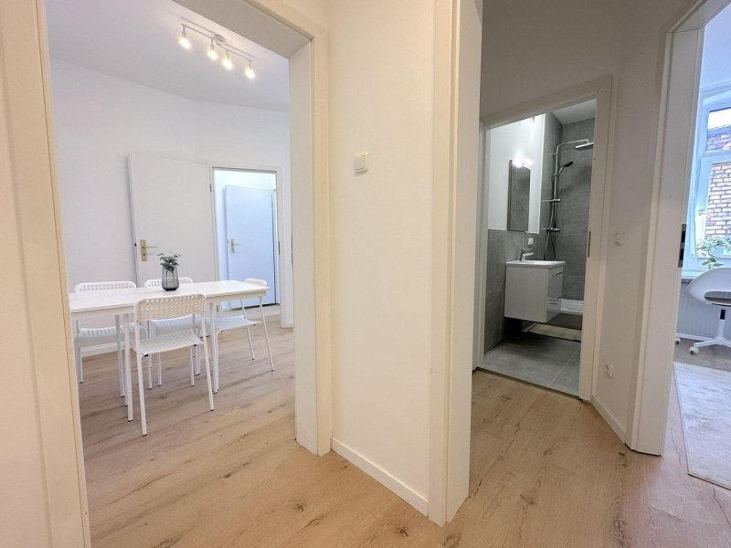 Die Lage ist ideal: Nur 5 Minuten zu Fuß zur nächsten U-Bahn-Station und lediglich 3 Minuten zu verschiedenen Einkaufsmöglichkeiten. Die Umgebung ist ruhig und dennoch zentral, sodass man schnell überall hinkommt.