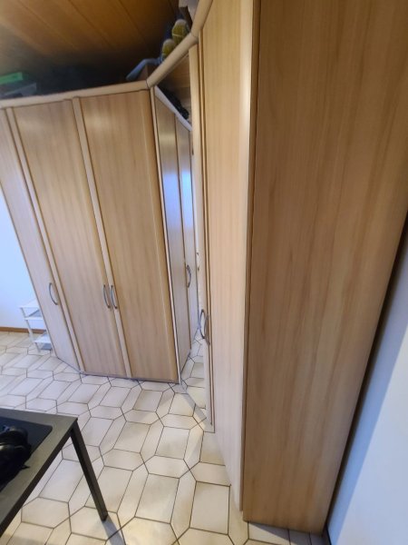 Das Zimmer ist möbliert mit einem großen Wandschrank, einem kleinen Nachttisch und bei Bedarf einem Bett. Ein Gaming-Schreibtisch passt auch perfekt rein, den müsstest du aber selbst mitbringen. Das Zimmer liegt zum Gemeinschaftsgarten hin (den du natürlich gerne benutzen darfst, wenn du magst), ist also von der Straße abgewandt und wird deshalb das "Gartenzimmer" genannt. Es ist hell und sehr ruhig.
