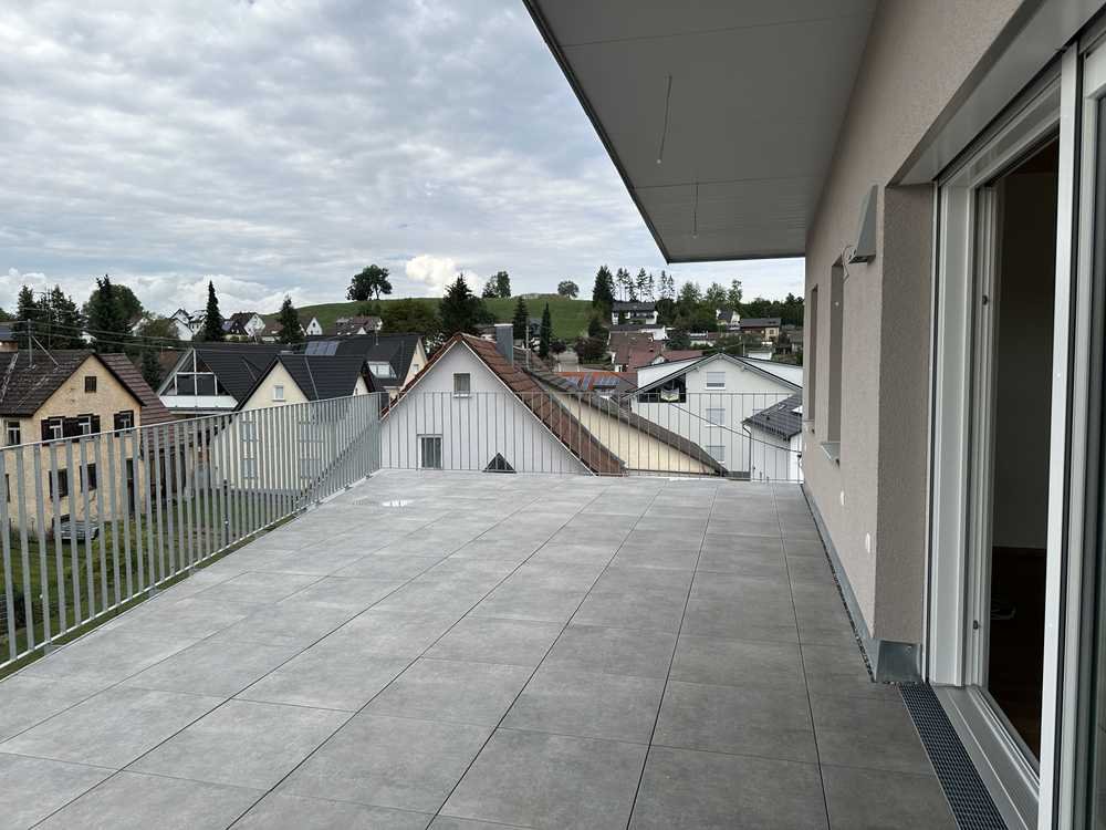 Das Highlight ist die weitläufige, teils überdachte Terrasse mit edlen Feinsteinzeugplatten, die Ihnen einen beeindruckenden Rundumblick in Süd- und Westrichtung ermöglicht.