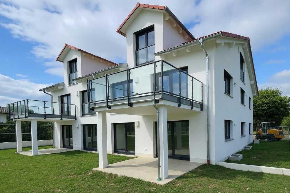 Ab dem 1.9.2025 können Sie diese beiden energieeffizienten KfW40 QNG Neubau OG-Wohnungen beziehen. Die OG-Wohnungen ziehen sich auf zwei Ebenen und verfügen über modernste Ausstattung mit hochwertiger Einbauküche. Es handelt sich hierbei um einen Erstbezug in Ziegel-Massivbauweise in lichtdurchfluteten Räumen in absolut ruhiger Wohnlage mit herrlichem Bergblick. Die circa 30 m² großen, geschlossenen Kellerräume mit Fliesenbelag, die großzügigen Garagen und Außenstellplätzen sowie die großen Balkone bieten viele Entfaltungsmöglichkeiten. Zu den Wohnungen zählen drei lichtdurchflutete Zimmer, eine Galerie mit fantastischen Bergblick, je Raum Be- und Entlüftungsanlagen, ein luxuriöses Badezimmer und ein separates Gäste-WC. Das Vierfamilienhaus wird mit einer PV-Anlage und einer Wärmepumpe betrieben. Besonders hervorzuheben ist, dass jeweils ein sehr großer Balkon nach Süden mit Bergblick vorhanden sind. Ein großer Wasch- und Trockenraum steht Ihnen im Keller zum Anschluss Ihrer Waschmaschine zur Verfügung. Die Vermietung erfolgt direkt vom Eigentümer provisionsfrei.