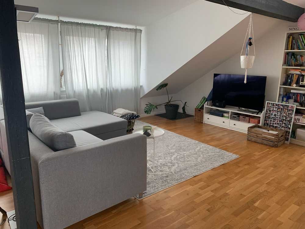 Diese schöne Dachgeschosswohnung befindet sich im 4. Stock eines Mehrparteienhauses. Dreienhalb schön geschnittene Räume, Holzbalken im Wohnzimmer sowie ein Balkon machen diese Wohnung zum Wohlfühlort in Stadtlage. Zur Wohnung gehört außerdem ein Carport-Stellplatz im Innenhof so wie ein Kellerraum. Die Einbauküche kann von den Vormietern abgekauft werden. (Hinweis: Ein Aufzug ist NICHT vorhanden)